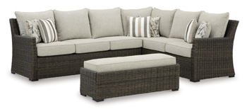 Item Number:P465-822 Brook Ranch Outdoor Sofa Sectional/Bench with Cushion (Set of 3)