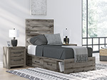 Series Features:Weathered gray finish over replicated Oak woodgrain. Large scaled dark colored handles. Cases feature a framed front and pilasters. Panel beds twin (53), full (55), queen (71), and king (72) feature headboard footboard packed together, bed rails queen (96), king (97) required. Side roller glides for smooth operating drawers. Drawers lined with a faux linen laminate for a clean, finished look. Slim profile dual USB chargers located on the back of the night stand top. All side storage options (50,150,60,160) requires the use of the B100-11, B100-12, B100-13 or the B100-14 roll slats. All under bed storage units (50,150,60,160) accommodates to 10.5"W x 10.5"D x 11"H cube storage bins. Mirror (36) has the versatility to be mounted on dresser or wall horizontally or vertically. Safety is a top priority, clothing storage units are designed to meet the most current standard for stability, ASTM F 2057 (ASTM International). Drawers extend out to accommodate maximum access to drawer interior while maintaining safety. Minor assembly required.