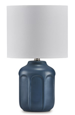 Series Features:Antique teal blue glazed ceramic table lamp. Drum hardback shade. On/off switch. (1) E26 socket, type A bulb recommended - 60 watts max or 13 watts max CFL.