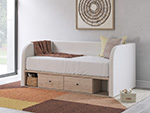 Series Features:Smooth, light finish with replicated Oak grain. Inset drawers with black colored knobs. Accented with a floral pattern. Side roller glides offer a smooth opening and closing of the drawer. Drawer interiors are lined with a replicated linen design for a clean, finished look. All cases feature cylindrical legs. Slim USB charger located on the back of the night stand tops. Upholstered headboards (53,87) have adjustable height options for optimal relationship to bedding height. Upholstered headboards (53,87) can attach to a bolt-on metal bed frame B100-21. Footboards (52,84) require the B100-11 and B100-12 roll slat. All side storage options (50,150) requires the use of the B100-11, B100-12 roll slats. All under bed storage units (50,150) accommodates to 10.5"W x 10.5"D x 11"H cube storage bins. Twin (180) and full (183) upholstered daybed back panel and rails (180) require the use of upholstered side panels (181,182), roll slats are included, and is compatible with storage unit (50). Mirror (36) has the versatility to mount on the dresser or to the wall horizontally or vertically. Safety is a top priority, clothing storage units are designed to meet the most current standard for stability, ASTM F 2057 (ASTM International). Drawers extend out to accommodate maximum access to drawer interior while maintaining safety.