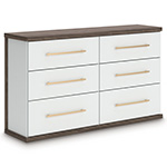 Series Features:Two-tone with a dark brown finish over a replicated walnut grain and a matte white finish. Contemporary case design features rounded corners and thick tops. Drawers accented with long champagne finished handles. Side roller glides for smooth operating drawers. Slim USB charger located on the back of the nightstand tops. White faux leather upholstered headboard 71,72 feature ambient lighting. Mirror (36) has the versatility to be mounted on dresser or wall horizontally or vertically. Safety is a top priority, clothing storage units are designed to meet the most current standard for stability, ASTM F 2057 (ASTM International). Drawers extend out to accommodate maximum access to drawer interior while maintaining safety. Minor assembly required.