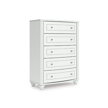 Series Features:Matte white finish. Cases feature pilasters, bun feet, and crystal knobs. Beds, cases, and mirrors feature ornate beading details. Beds have decorative acrylic ball tops. A slim USB charger is located on the back of the nightstand tops and lighting under the top. Side roller glides for smooth operating drawers. Drawer interiors finished with a replicated linen design. Twin (153) and full (187) headboards can attach to a bolt-on metal bed frame B100-21 and hook-on panel footboard (52,84) respectively. Light gray upholstered headboards (153,187) and nightstand (91) feature multi-colored LED lighting. All side storage options (50,150) requires the use of the B100-11, B100-12 roll slats. All under bed storage units (50,150) accommodates to 10.5"W x 10.5"D x 11"H cube storage bins. Bedroom mirror (26) can be mounted on wall vertically. Vanity mirror (25) has ambient white lighting and can be mounted on vanity cabinets (22). Optional stool (01) available. Safety is a top priority, clothing storage units are designed to meet the most current standard for stability, ASTM F 2057 (ASTM International). Drawers extend out to accommodate maximum access to drawer interior while maintaining safety. Minor assembly required.